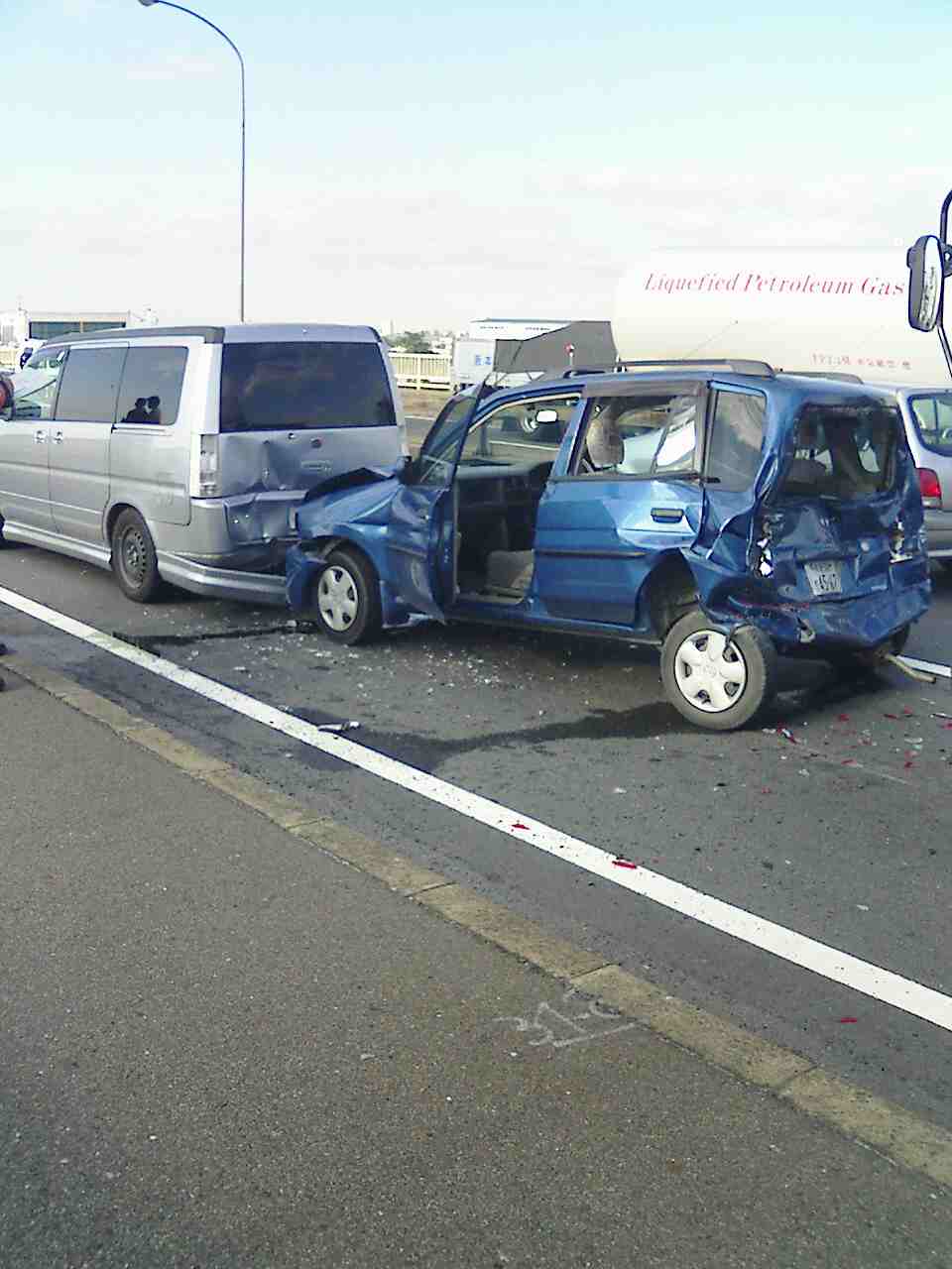 2004年10月15日午前7時35分ごろに京都府八幡市で発生した車5台による玉突き事故。