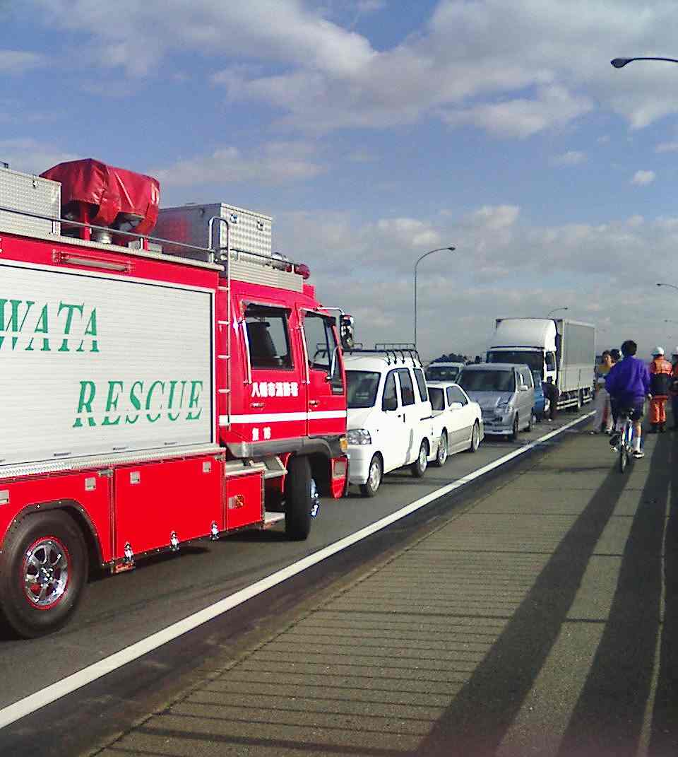 反対車線に到着。すでに救急車は病院へ・・・