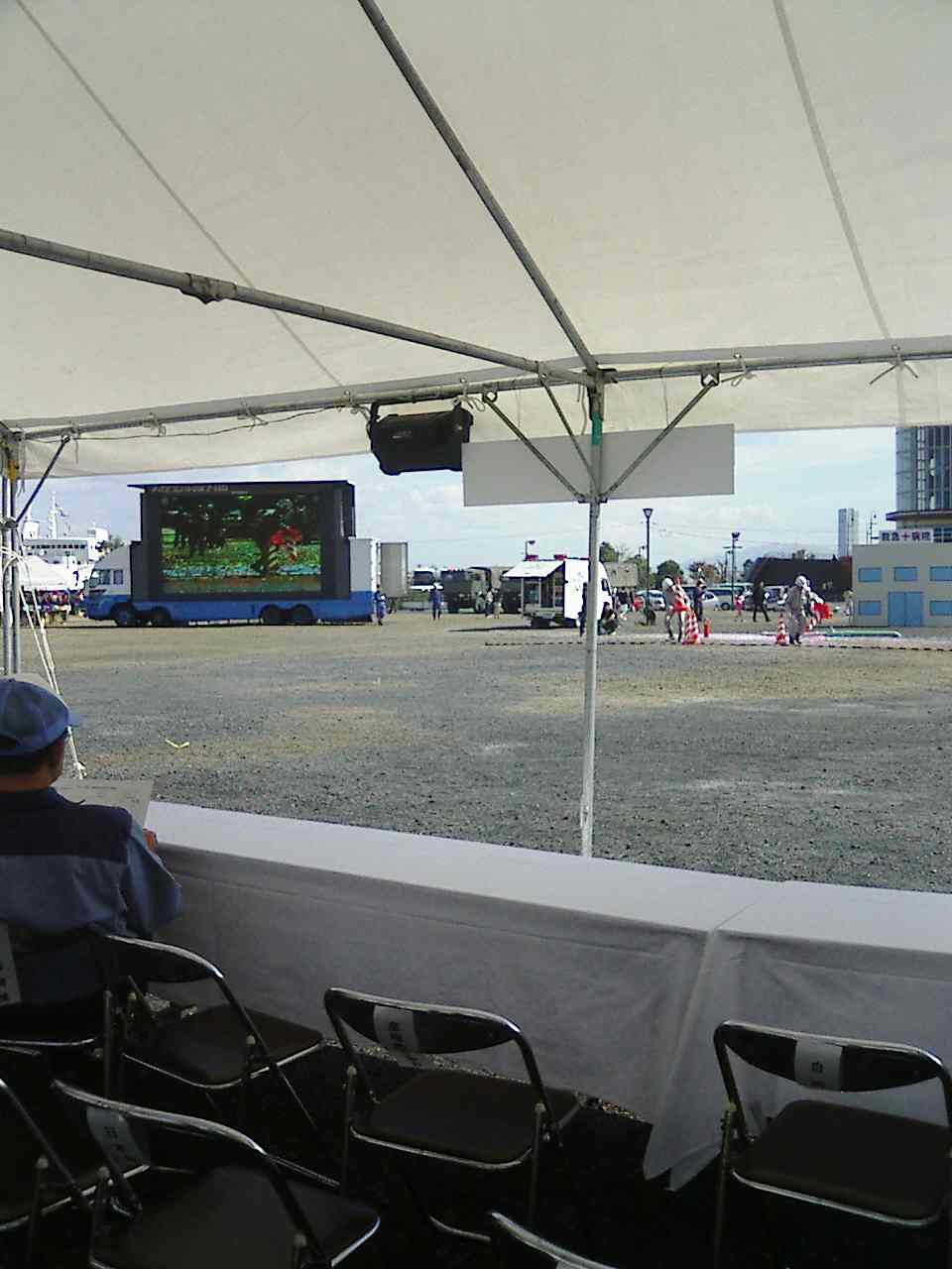 大型スクリーンが設置され、他の会場の様子などを中継
