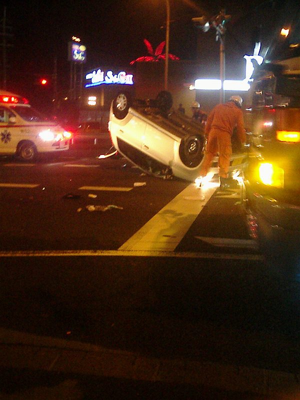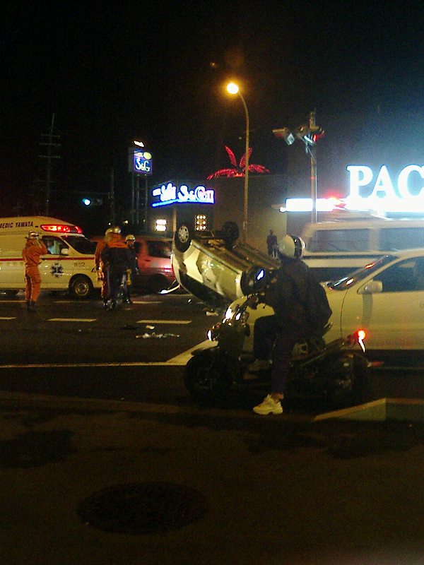 管理人は5分後に現場到着。すでに負傷者は車内収容。打撲程度でした。