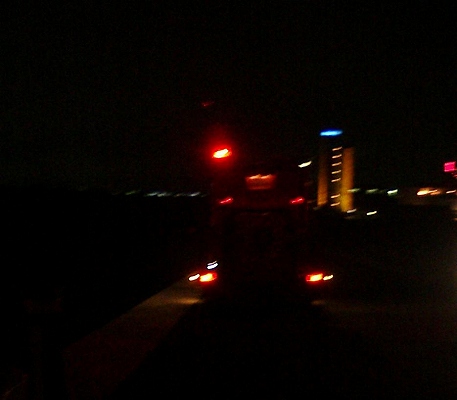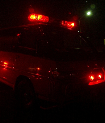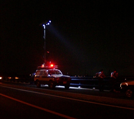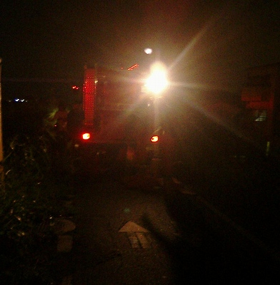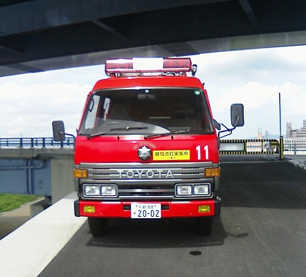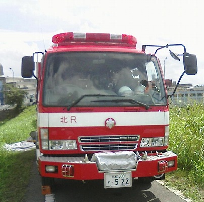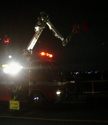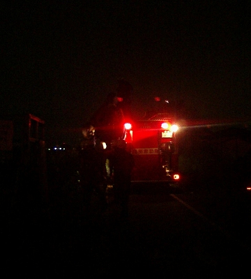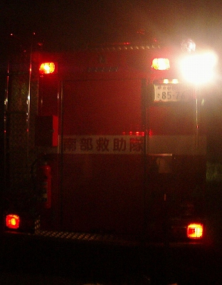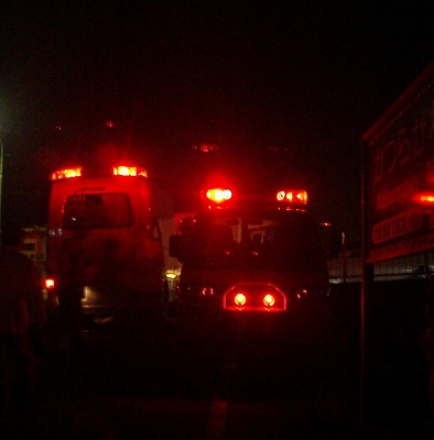 左は八幡消11。右は警察の照明車。