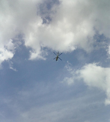 上空から捜索中の京消へり2