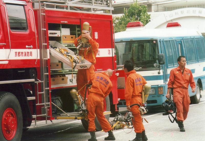 訓練指揮本部前。局本部の警防司令隊車(京消指令4)