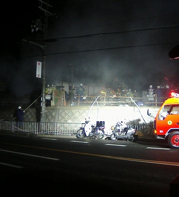 2004年3月20日午後11時20分ごろに大阪府枚方市で発生した建物火災の写真です。負傷者等はなし