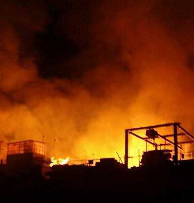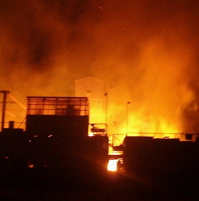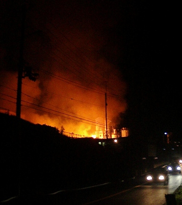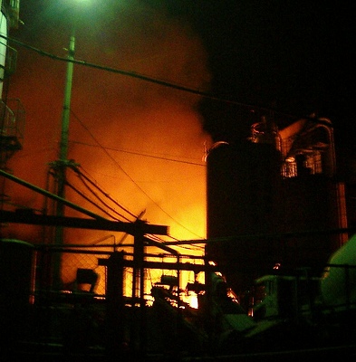 2004年7月17日午後10時ごろに京都府京田辺市で発生した工場火災。